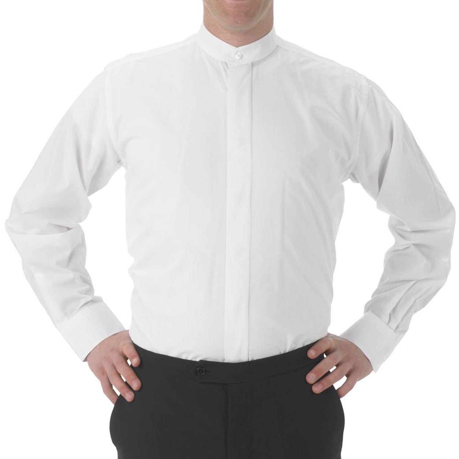 Banded Collar Dress Shirt - White or Black