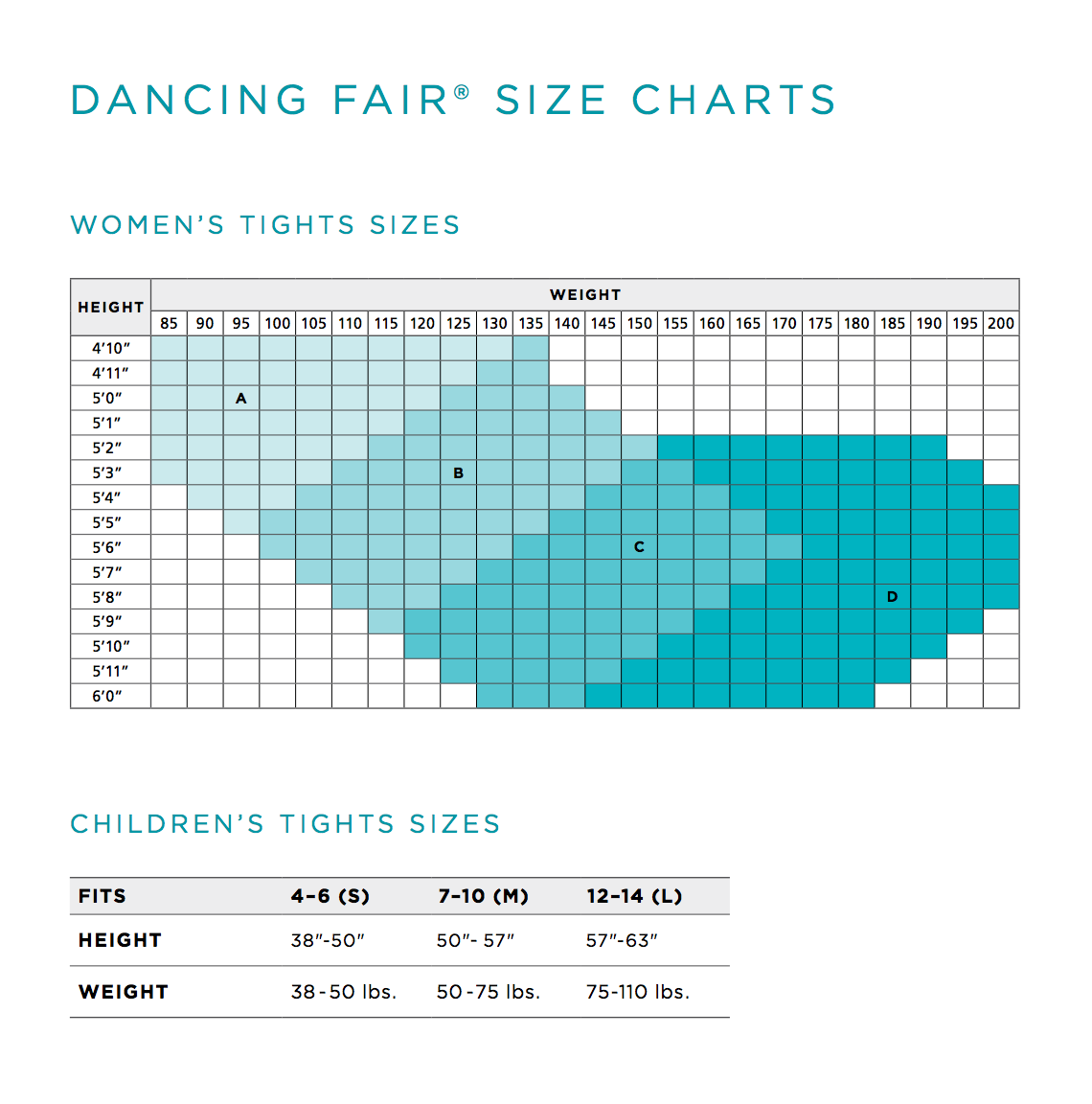 Sizes: A, B, C, D